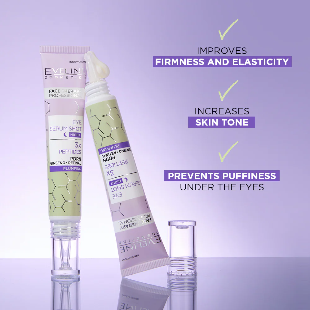 Eye Serum Shot Plumping and regenerating eye area treatment is an overnight smoothing treatment that noticeably improves skin firmness and reduces the appearance of wrinkles after just one use. The skin under the eyes becomes soft, supple, and visibly more rested upon waking. This provides intensive support for the area that is the first to show signs of fatigue and loss of firmness.